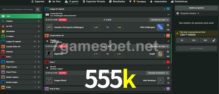 A aposta 555k oferece aos jogadores a experiência mais conveniente de apostas em eSports!